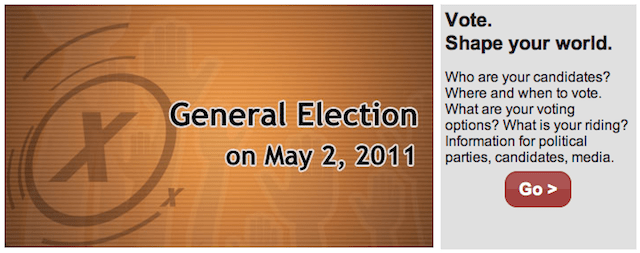 Canada: General Election on May 2, 2011 Posted on March 30, 2011 by Stephane Daury Let’s kick this moron out of office, shall we? 45.545447 -73.639076 Share this: Click to share on X (Opens in new window) X Click to share on Facebook (Opens in new window) Facebook Like Loading... Related