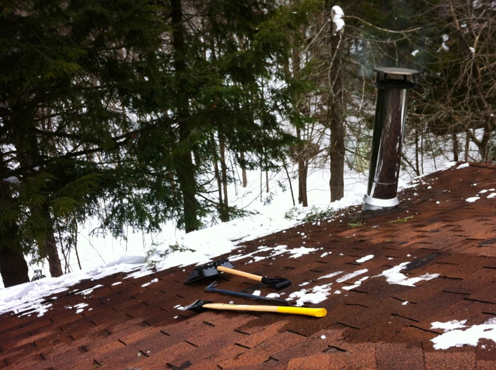 Breaking up some ice dams on the roof. Another great workout.