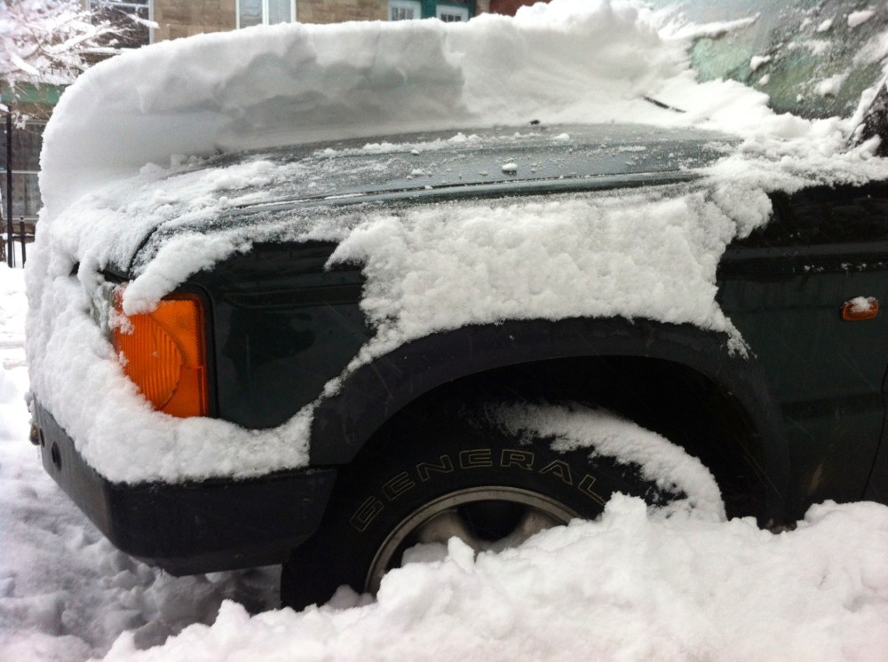 And we’re expecting another 15cm (6-7″) Image 4 As a side-note: 4th-hand Land Rover: $2.3k. Misc fixes and upgrades: ~$6k. Driving over and out of the snowbank, first try, while everybody else is shoveling: priceless. 45.532333 -73.564333